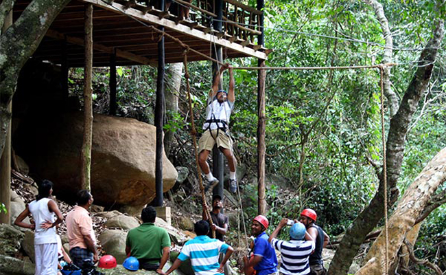 Stock up on breakfast as you will have an entire day to spend on many adrenalin pumping activities. Aerial rope climbing, monkey rope swinging, slithering rope sliding, toddy tapping, para-gliding, paint ball, water polo, canoeing, kayaking and mountain biking - the choice is yours.